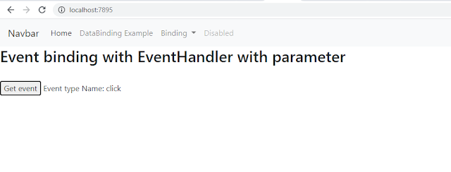 In this example ,we assign an event handler which is nothing but a method .which this event occurred its display output in browser.